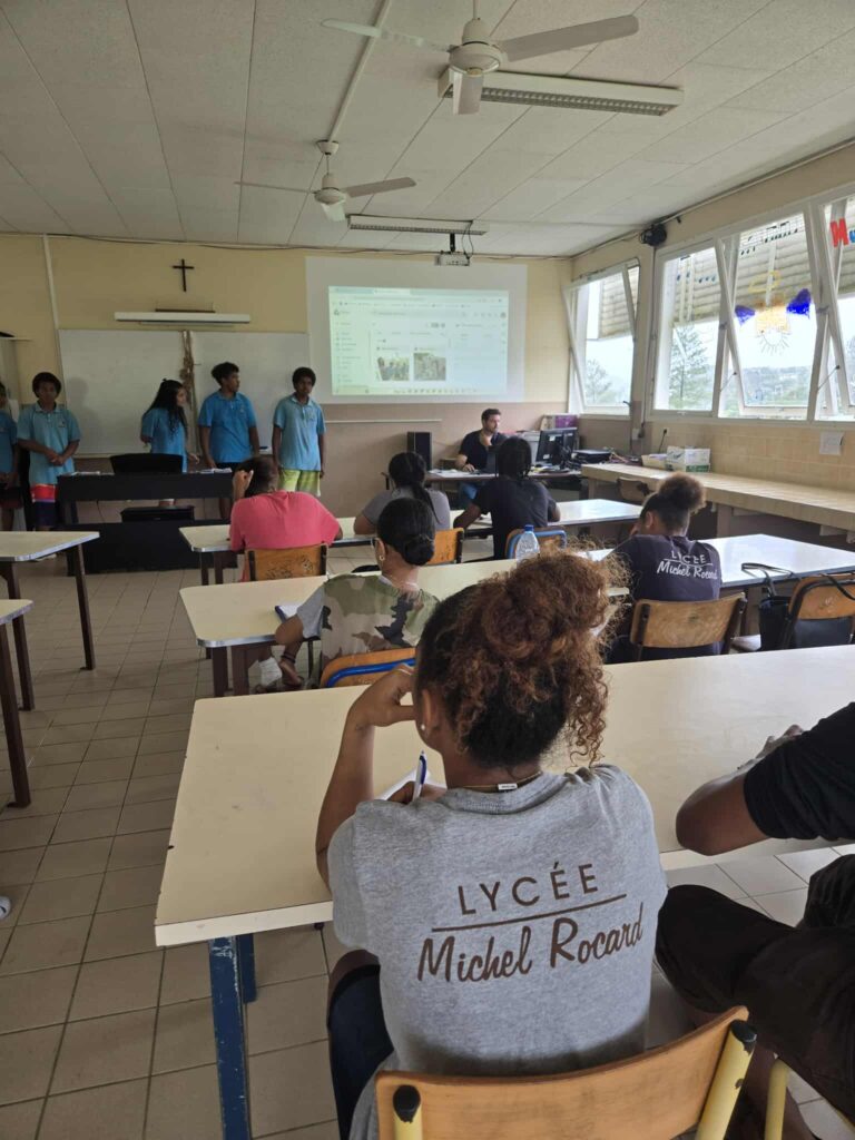 lundi matin, trois anciens élèves du Collège Sacré Cœur de Bourail Pablo, Marilou, et Titouan, sont venus expliquer leur scolarité aux élèves de 3ème. Entre Métropole, Belgique et Canada, ils ont pu raconter leur parcours au travers de différents cursus.