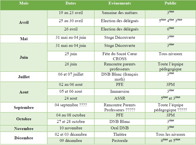 Les dates importantes
